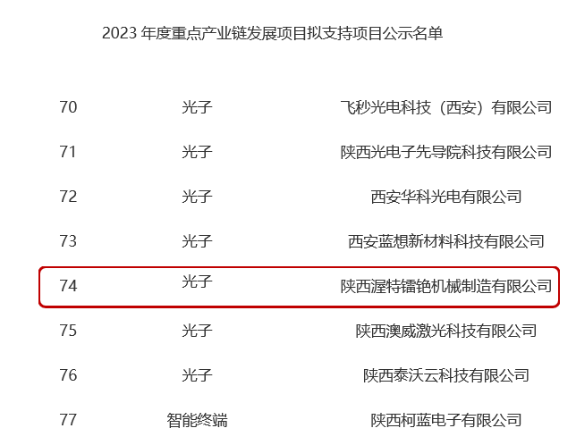 渥特智造項目獲2023年陜西省重點產業鏈發展項目支持近日,由陜西渥特鐳銫機械制造有限公司承擔的《精密激光加工項目》獲 陜西省工業和信息化廳2023年度重點產業鏈發展-光子產業鏈項目支持。該項目以“高精度、高效、高穩定性、低成本”為目標,采用“水導...